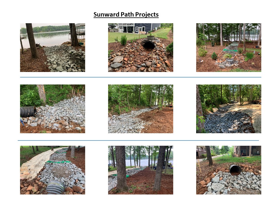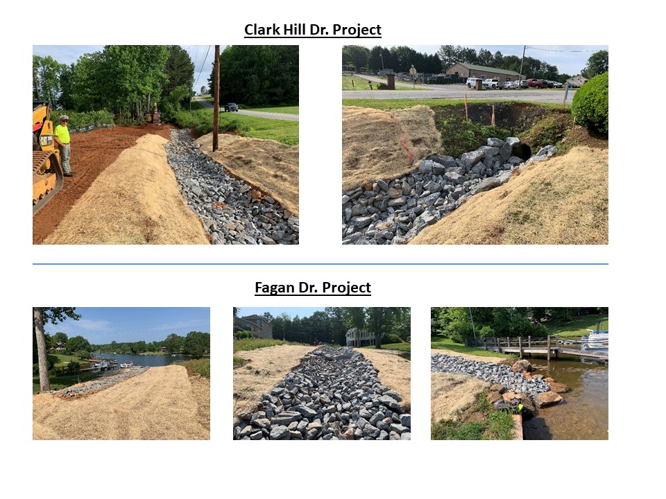 Storm drainage culvert pipes are a primary cause of concern because they directly channel stormwater into Lake Bowen. As part of a 319 Grant project, several stormwater outfall improvement projects were implemented to address several areas that discharge into the Lake Bowen Drinking Water reservoir. Some of the outfalls are located within SWS property; others are immediately upstream of the SWS property with direct discharge to a channel that flows to the lake, or to a cove at the periphery of the lake. The Best Management Practices (BMPs) include installing stone rip-rap swales and stilling basins. The BMPs are designed to reduce stormwater laden sediment discharging into Lake Bowen.